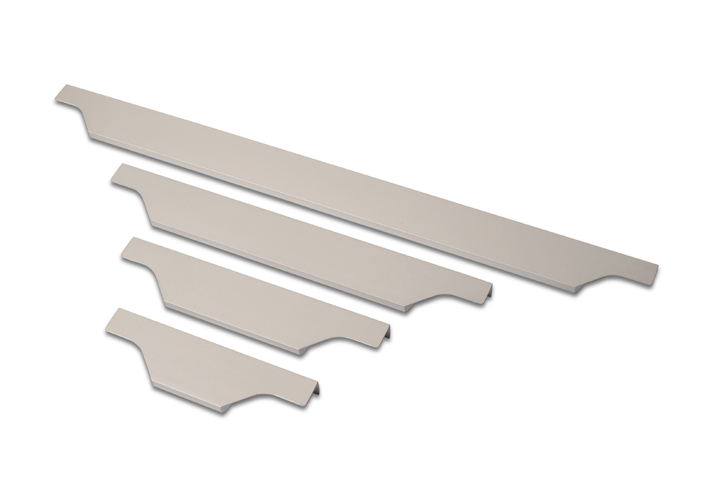 Накладные профильные ручки устанавливаются на торец дверного полотна, не загружая дополнительными деталями мебельный фасад.