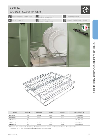 Артикул Модуль, мм Выдвижение Материал Покрытие Размеры (Ш х В х Г), мм НАПОЛНЕНИЕ И АКСЕССУАРЫ ДЛЯ КОРПУСНОЙ МЕБЕЛИ