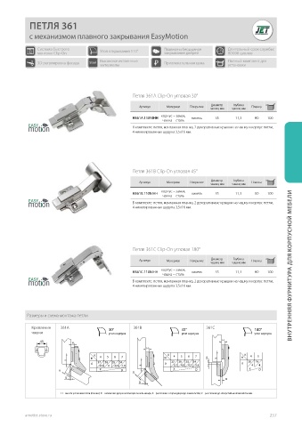 Петля 361B Clip-On угловая 45°